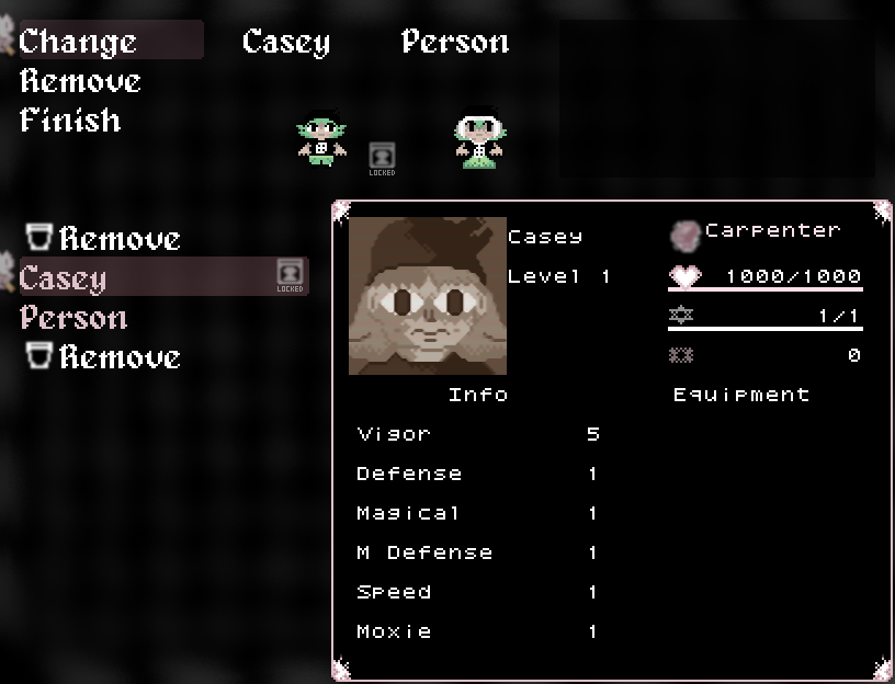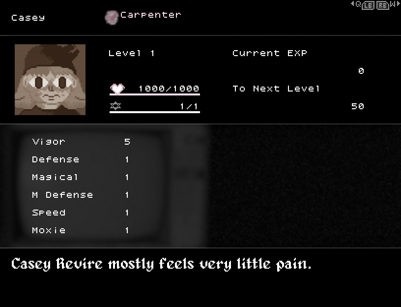 I’ve been doing a lot of the minor visual related tasks, such as how fonts are processed, and the game’s resolution settings. I’ve decided that when the game goes full-screen, it gets a border, akin to those old Super Gameboy games that used one to fit the screen’s resolution. I sadly, can’t seem to get the game to not look a little blurry when entering full-screen…